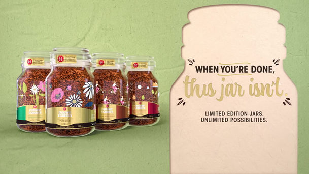 Douwe Egberts (Moccona) announced the launch of their limited-edition decorative jars, available in four stunning designs. Consumers could enjoy their favourite instant coffee and, once the jar was empty, up-cycle it for alternative uses.